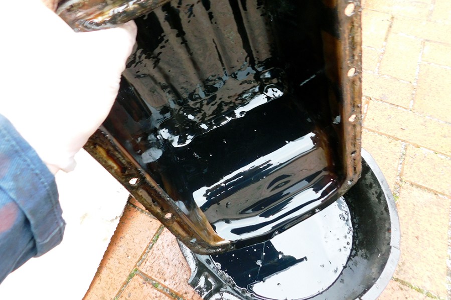 In the event of severe contamination, consider that physical removal and cleaning may be the only option. This engine sump pan contained several centimetres of congealed sludge.