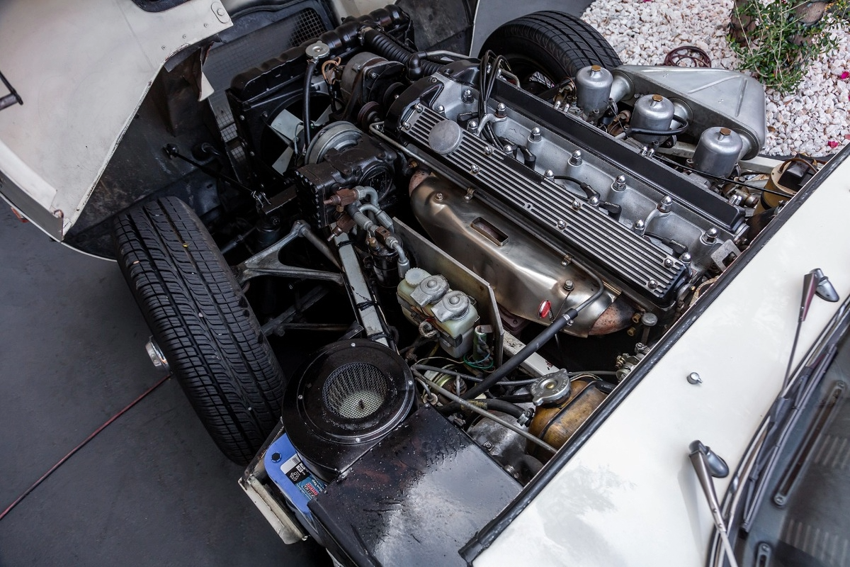 Early E-types were fitted with a triple SU-carburetted 3.8-litre straight-six XK engine. These first-generation ‘flat floor’ coupés and roadsters are easily identified by their external bonnet latches located behind the front wheels; such examples are very rare and expensive, with restored cars changing hands for telephone numbers at auction.